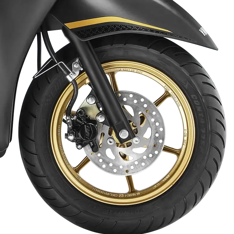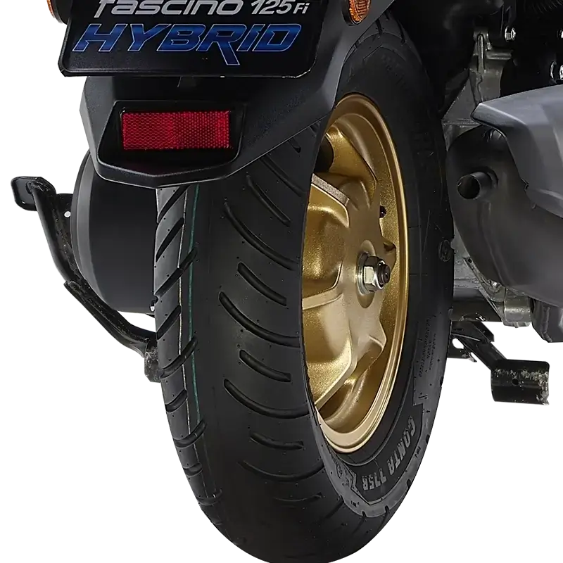 The Fascino’s 110mm wide rear tyre enhances ride comfort, boosting confidence and safety.